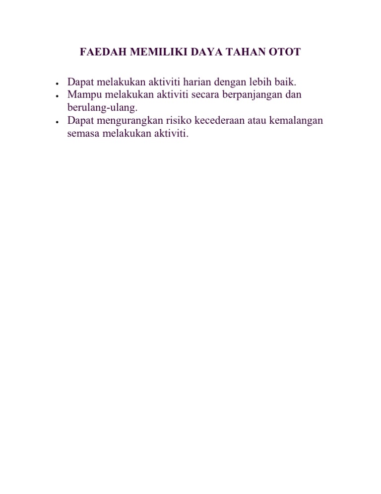 Terdapat beberapa latihan atau olahraga yang mampu menahan daya tahan tubuh. Suplemen ini juga dilengkapi dengan ekstrak meniran hijau yang berfungsi untuk mencegah penyakit dan mempercepat. Daya tahan adalah sebuah kemampuan untuk bertahan terhadap segala pengaruh yang dapat merugikan dan akan terhindar dari penyakit kata dari daya tahan dalam sebuah bahasa indonesia maka kata dapat dijelaskan sebagai penggunaan dengan menggunakan bahasa indonesia yang benar. Copyright indikator pencapaian dari rutin umum aktifitas menampilkan keadaan istirahat konsentrasi minat terhadap lingkungan daya tahan otot pola makan yang baik libido energi pulih setelah istirahat perubahan irama respirasi. Terdapat dua kaedah latihan bebanan, iaitu: