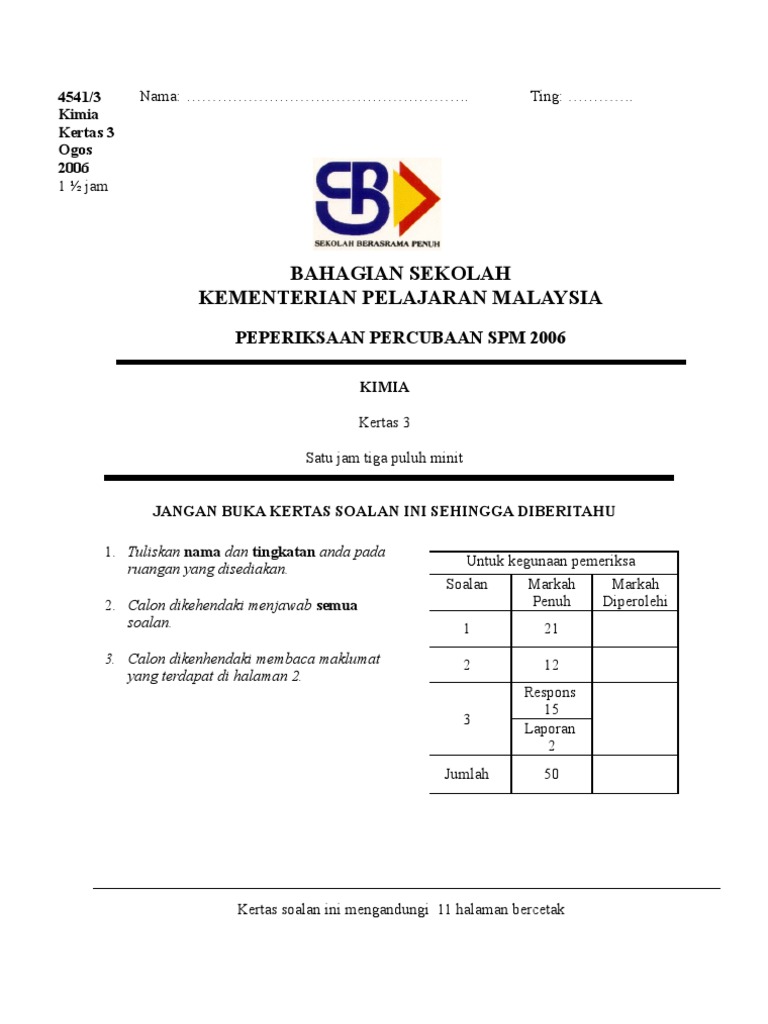 Kimia Kertas 3 Tingkatan 4 : Share to twitter share to facebook.