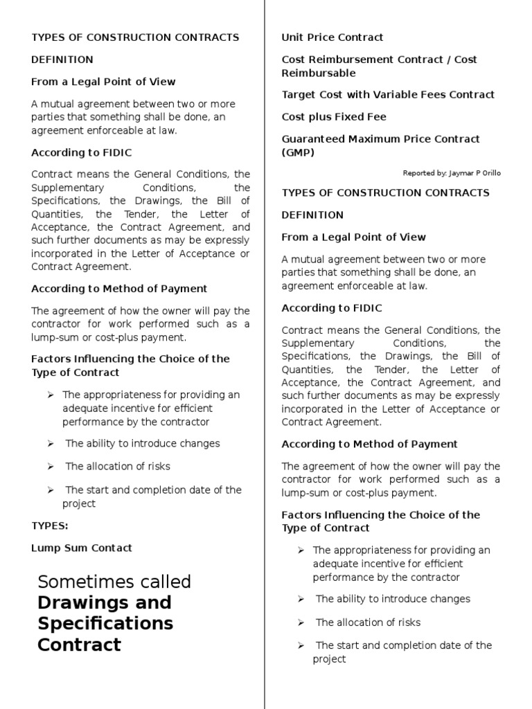 Related : Type Of Construction Contract In Malaysia / Types of Construction Contracts | General Contractor | Prices - Lump sum contracts can include incentives or benefits for early..