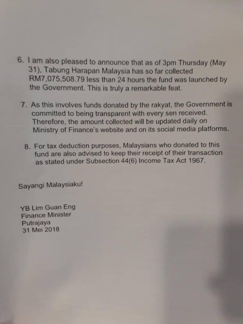 'i did not contribute to tabung harapan because i have been paying my taxes without fail.